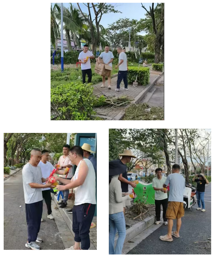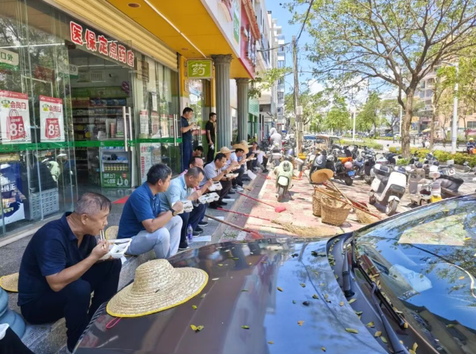 “快喝点水,坐下来,休息一下!”8月28日上午,回新社区一商铺老板对忙着清扫街边残枝落叶的工作人员说到。