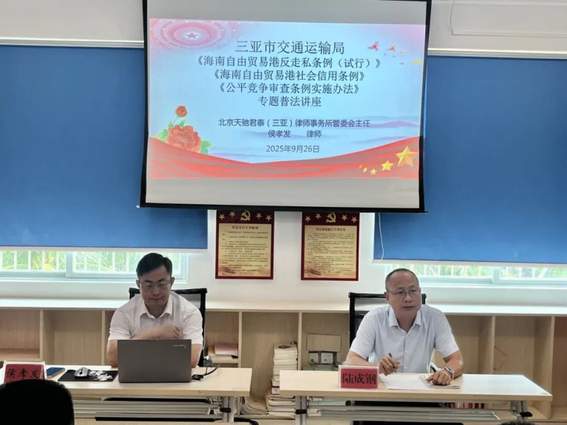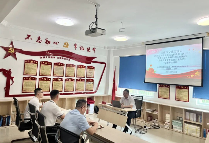 此次专题培训特邀北京天驰君泰(三亚)律师事务所管委会主任侯孝发授课。侯孝发律师紧密结合三亚交通运输领域工作实际,围绕海南自由贸易港反走私相关制度设计、海南自由贸易港社会信用体系建设的法治保障、《公平竞争审查条例》实施办法三大核心主题开展讲解,分析自贸港的独特优势和主要任务,运用典型案例和详实数据,提出扎实做好封关运作准备、加紧推进自贸港核心政策落地等建议,内容既贴合交通行业需求,又具备极强的实践指导价值。