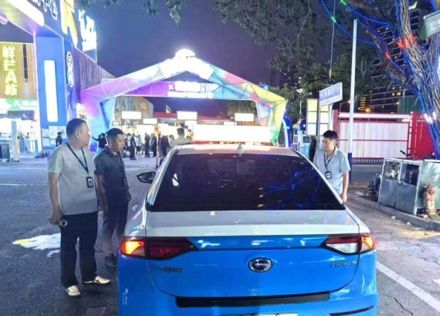 ▲ 4月16日晚,在鲜芒夜市对出租车进行巡查