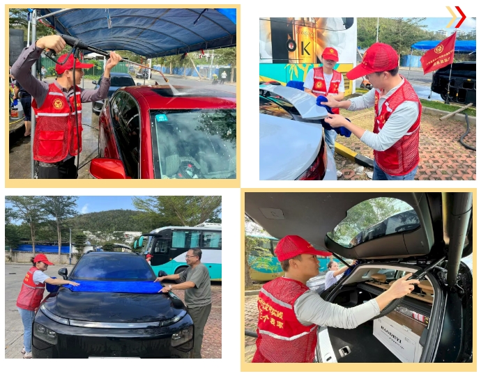 清洁类志愿者同样一丝不苟,有条不紊地为车辆清洗外观、进行车内吸尘、仔细擦拭玻璃,不放过任何一个卫生死角,让一辆辆汽车焕然一新。有位车主看着爱车洁净如新,笑着说道:“这服务太周到了,感觉我的车像刚买的一样,太感谢他们啦!以后有这样的志愿服务活动我一定要积极报名参加。”