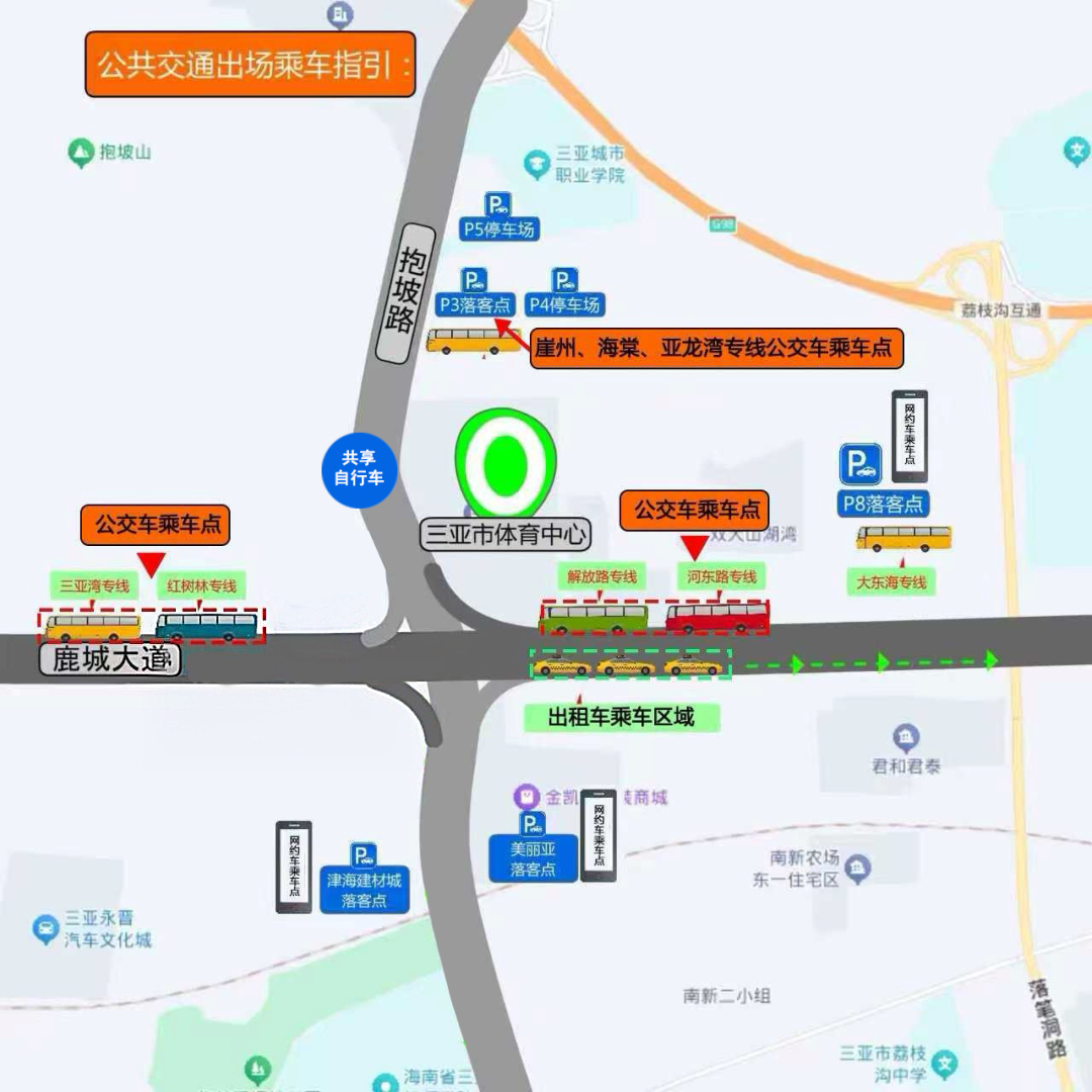 3.三亚湾片区观众可选择津海建材城落客点;